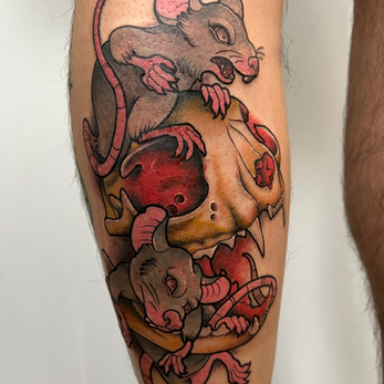 Kicking off this tattoo journey in 2013, Bert's been leaving his mark ever since. With a background in Graphic Design, he seamlessly blends his artistic flair with the technical precision needed. His creations are a fusion of bold, eye-catching designs that can reflect his love for skateboarding, pizza, and the thrill of living life on the edge.
